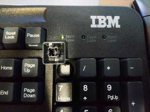 今回レビューで取り上げるのはプリファードの系譜でも珍しい製品で、00Y7348というモデルナンバーが与えられています。Lenovo売却までIBMキーボードの主流だったSK-8825のサーバー用で、Windowsキーのデザインが8825と異なります。また本体やキートップの表面加工もシボ加工が適度な粗さを持ち、コストダウンとデザイン、そして使い勝手のバランスが考慮された良品でもあります。入力方式は一般的なメンブレン+ラバーシートですが、手を加えるとデザインに見合った逸品に大化けします。