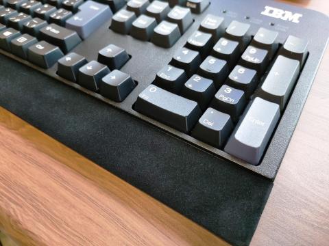 IBMキーボードの歴史を紐解く際、名機5576シリーズと並んで私が高く評価しているのが「プリファード・プロ(Preferred Pro)」と呼ばれる一連のシリーズです。42C0120、SK-8825などのモデルナンバーを持ち、左上が大胆にカットされた斬新なデザイン。黒色のメインキーとグレーのFnおよびテンキー周り、そしてIBMの代名詞「BIG BLUE」を連想させる青いEnterキー。東プレのREALFORCE、PFUのHappy Hacking KeyBoardなど日本製ハイエンドと比べても、今なお色褪せない一級品のデザインだと筆者は思います。