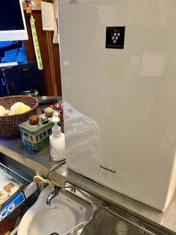 洗面器の上に設置しているシャープの空気清浄機に吸盤式のタオルフックを付けていたのですが