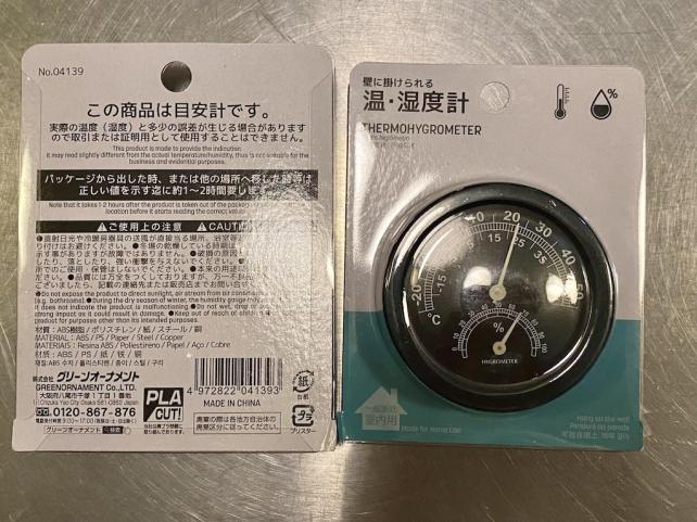 代用できそうな温湿度計を見つけたので 買い求めてまいりました。