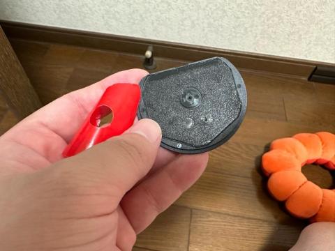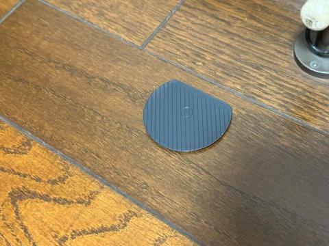 ドアストッパー本体を床に貼り付けた半円に差し込むような形でセットします