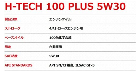 ・MOTUL H-TECH 100PLUS 5W-30 ←今回