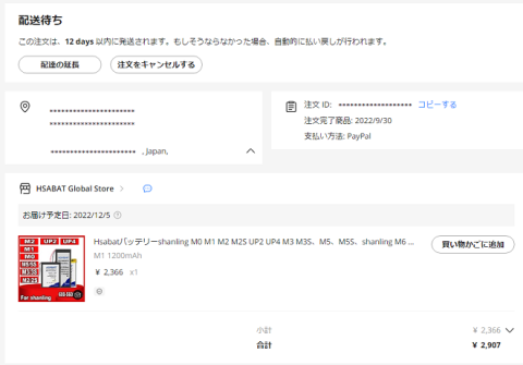 発注したのが2022年9月30日(金)のこと。