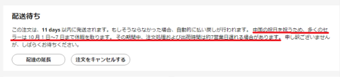 国慶節を挟んだとはいえ、発注から到着まで1か月