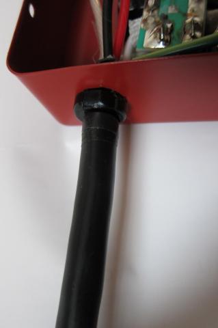 このケーブルを固定する部分が通りません.仕方なく,外皮を取り除いて,ビニテで巻いて,強引に通しました.