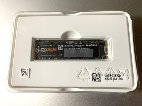 当初はマザーボード(ASUS PRIME X370-A)の不良を疑ったのですが、SSDの可能性もあるということで、急遽手持ちNVMe SSDの中から交換用として選択したのが、このSAMSUNG 970EVO Plus 2TB、MZ-V7S2T0B/ITです。