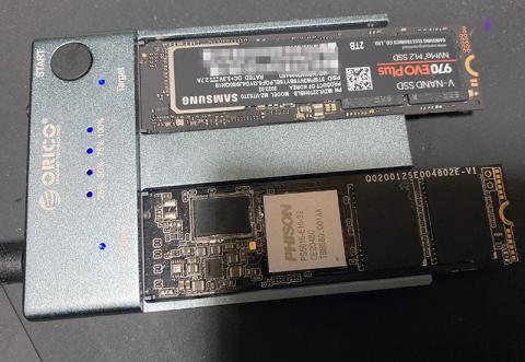 そこで熱が完全に冷めるのを待ってNVMeクローン作成機を使って、970EVO PlusをMP600と同一内容にします。