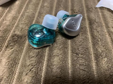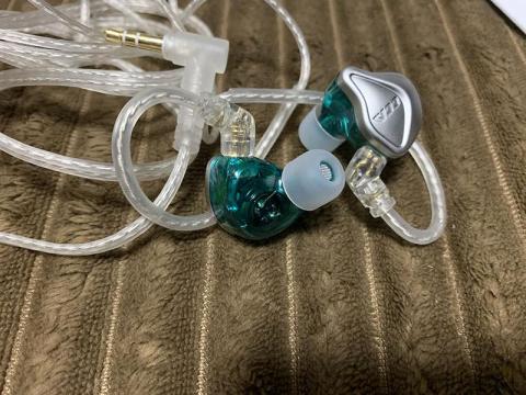 イヤフォン本体は青緑のクリアシェルで、フェイスプレートはアルミっぽい質感です。ケーブルは銀色の導体で、皮膜も含めて柔らかく作られていますので、取り回しは良好です。