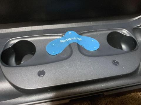 充電ケースを開けると本体とご対面です。マイクは外されて収納されています。なお、本来はケースに収納した時点で充電が開始されますが、出荷時点では充電端子部に絶縁シールが貼付されていますので、これを剥がした上でイヤフォンを収納すると充電が開始されます。