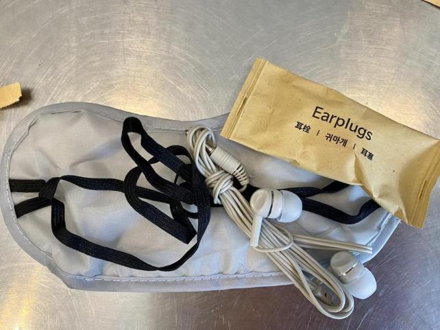 要は アイマスクと 耳栓と シリコンチップ付きのイヤホンが封入されております。