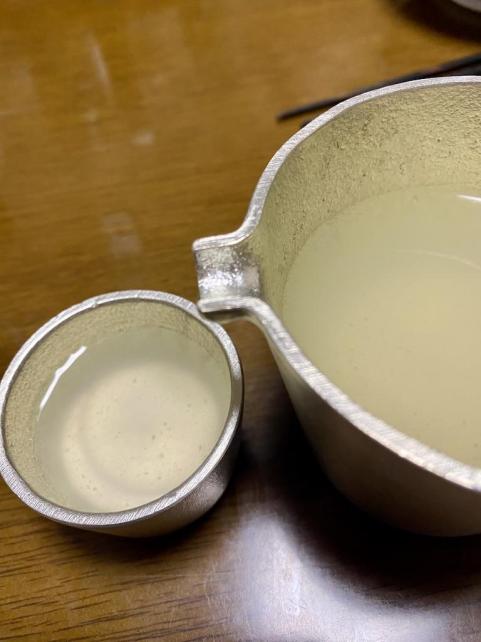 よく冷やして、よく振ってから 錫の酒器に移してすぐの写真です