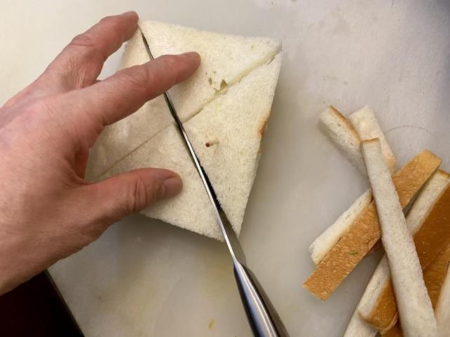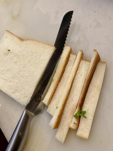 ちょっと難しいかもと思いながら サンドイッチの耳を切り落としてみると
