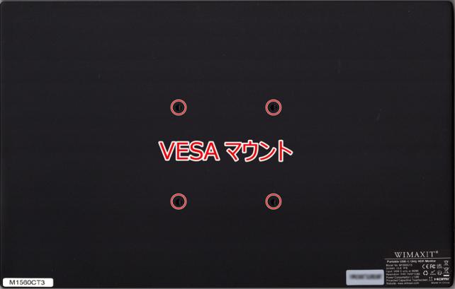 液晶パネルの背面には、VESAマウント用の孔が4ヵ所開いているので、アーム式モニタースタンドに固定することも可能と思われます。