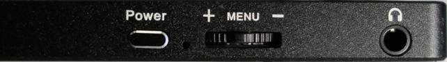 モニターの左側面には、パワースイッチ , ボリュームノブ , ヘッドフォンジャックが付いています。