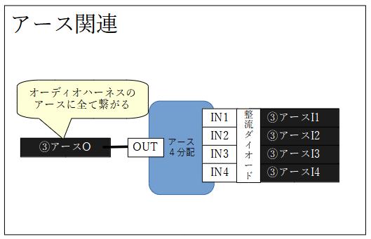 全体的な配線図を作成。そのうちのアース関連部の図だけ出しておく。