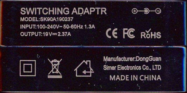 この電源アダプターは、19V 2.37Aで45Wのアダプターです。