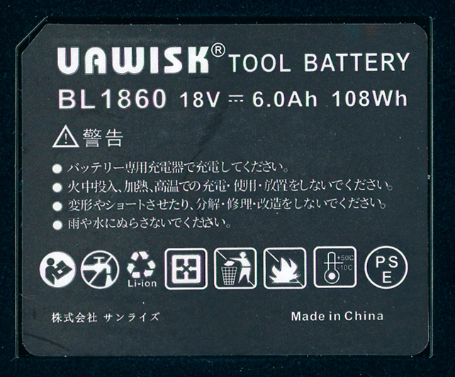 マキタ製BL1860Bバッテリー互換で、18V 6,000mAhの充電池です。