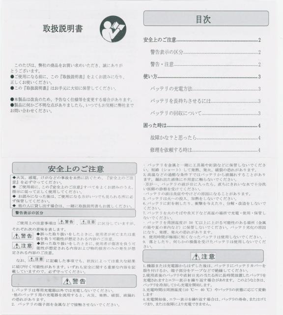 付属品は、取扱説明書が本バッテリーと一緒に茶段の箱に入っていました・