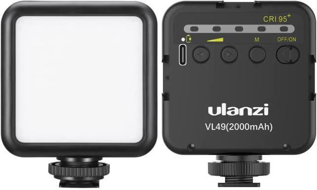 このLEDライトは、本体サイズが65mm(幅)×65mm(高:シュー部分を除く)×35mm(奥)で、重量は94gしかありません。