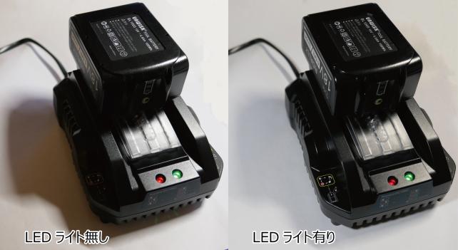 試しに、充電器とバッテリを側面から当てた光でできた影を、このLEDライトを使って消してみました。