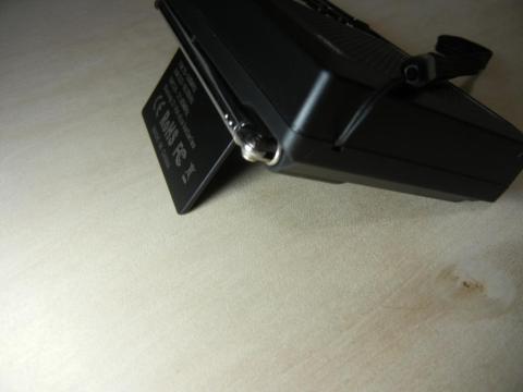 裏の文字が記載されたプラスチック板は本体を斜めに億歳に使用するスタンドになります。