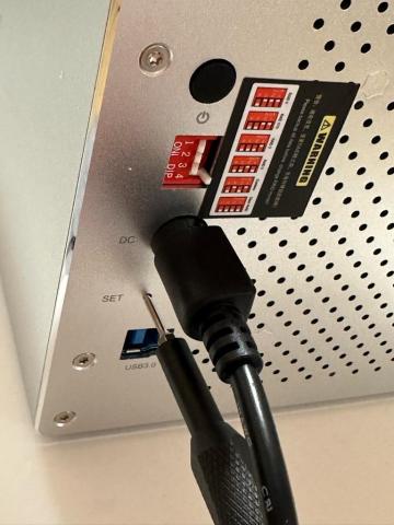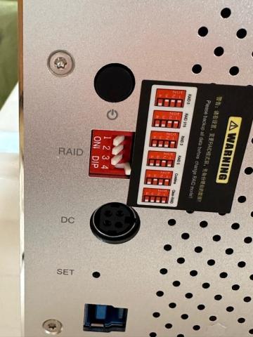HDD搭載後、RAIDの設定は本体裏側のディップスイッチで