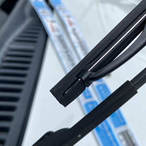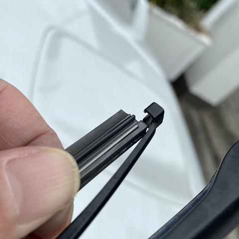 取り外しは、ワイパー軸側の方だけゴム爪でロックされているので強引に引き抜けばズルズルと抜けていきます。