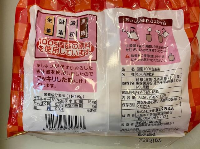 国内産原料を使用し、美味しいしょうが湯に仕上げました。