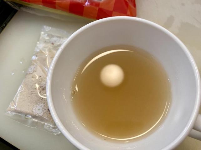 適当なカップに入れて 熱湯を注ぎ 溶かすだけ。