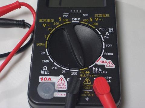 まずは、黒、赤のテスター同士を触れさせてブザー音確認。