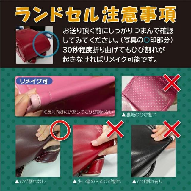 ただ心配だったのが注意事項にランドセルにひび割れがあるとリメイクできないとの事。