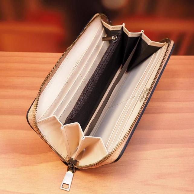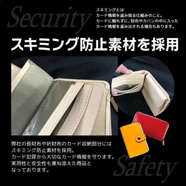 こちらのレビューを書くためお店の販売ページを見ていて気付いたのですが、財布のカード収納部分にスキミング防止素材が使われています。