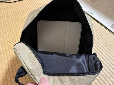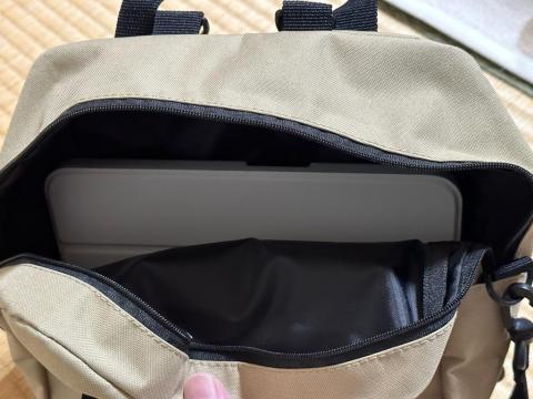 メイン収納はiPad mini 6ケース付きが縦・横ともに余裕がある収納力です