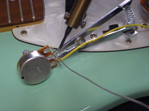 これ、ポットにリード線を「はんだ付け」しているのですがコレも熱に弱いんで