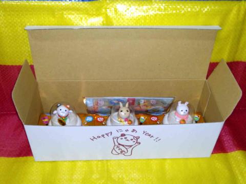 ねんドル岡田ひとみさん監修のかわいいフィギュアが乗った小さなお鏡餅たちです。