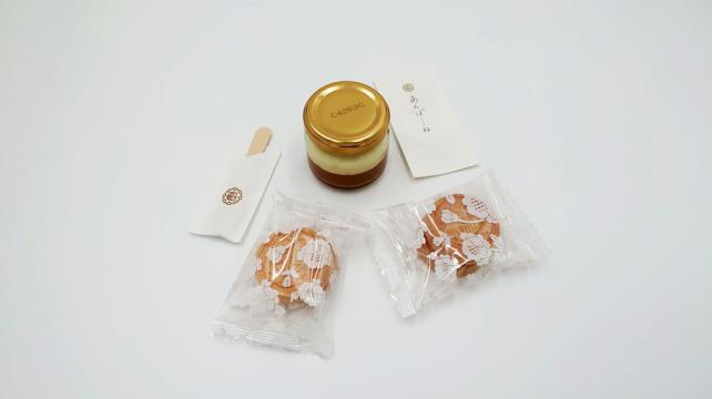 内容物は、小瓶、最中が2つ、スプーン、説明書。