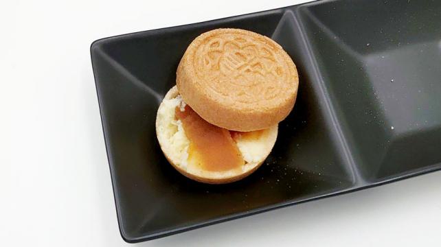 それに加えてコンセプトもしっかりしており、餡子に最中という技法をベースにしつつも和菓子にも洋菓子にもどちらにも傾かないような新分野になるような工夫もされています。