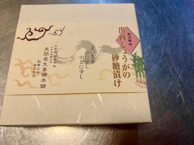 出西しょうがの砂糖漬け 来間屋生姜糖本舗 創業三百余年 老舗の味わいの一品です。