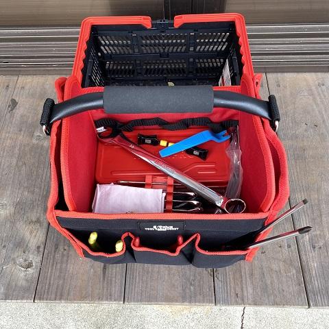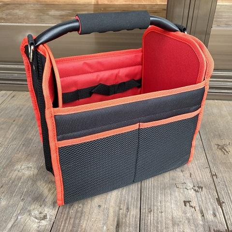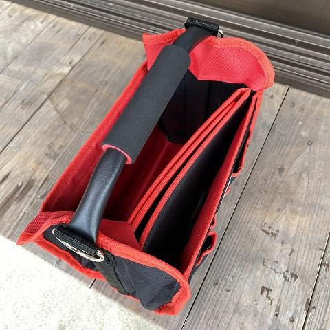 ソフトグリップで非常に持ちやすいです。ハンドルが山形になっているのも考えられていて、開口部が広く工具の出し入れが容易なところが気に入りました。