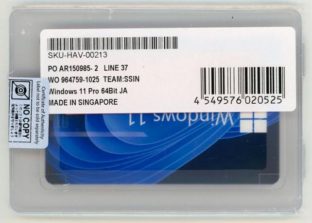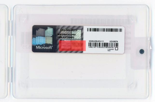 プロダクトキーは、プラスティック製ケースの内側に貼ってあり、ハードウェアに貼るのであれば、このプロダクトキーのシールを剝がして使います。
