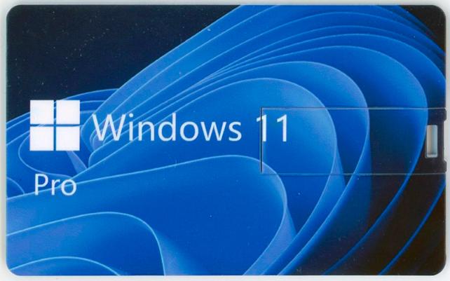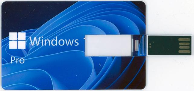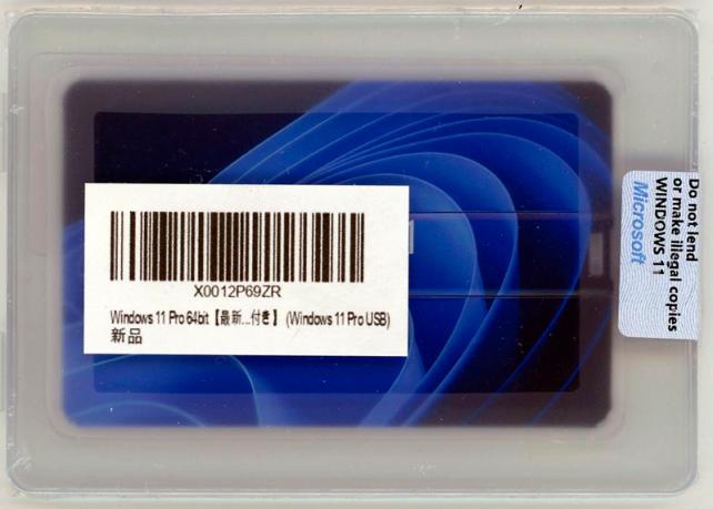 プラスティック製ケースの封印を破り開けると、表裏共にWinsows 11 Proのロゴが印刷されたカード型USBカードが出てきます。