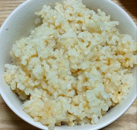 食べると、味は普通な感じ。少しモソモソしてるかと思っていたが、意外と白米のところが柔らかく玄米の胚芽部分が少し硬い感じ。でも思っていたより食べやすいと思った。