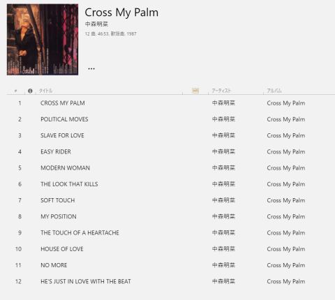 中森明菜の11枚目のオリジナルアルバムである“Cross My Palm”のCD/SACDのHybrid版です.そして,このアルバムは,全曲英語という特徴があります.