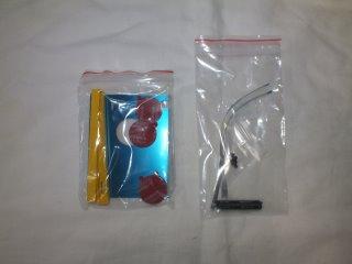 取付用のビス4本に位置決め用のシール4枚という製品構成