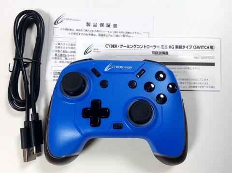 コントローラー本体に、通信用・充電用を兼ねたUSBケーブル、そして取扱説明書と製品保証書。