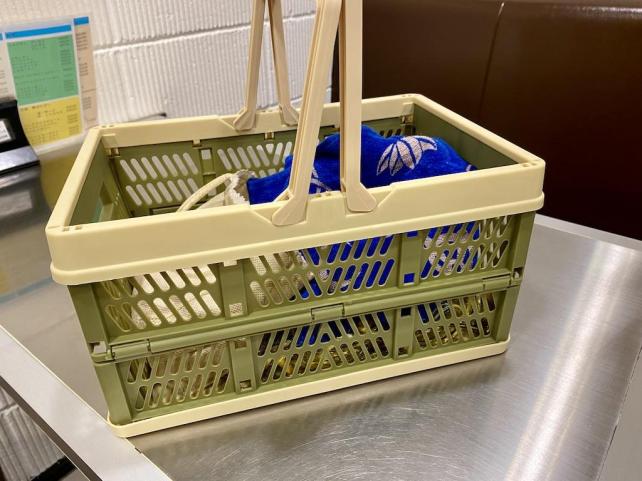 いつかどこかで誰かにもらったまま ずっと眠っていた取っ手付き折りたたみコンテナボックス。