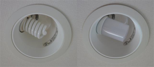 LED電球に交換して気付いたのですが、蛍光灯はスイッチを入れて約1秒後に電灯し、時間を経て徐々に明るくなっていくのに対し、LED電球はイッチを入れた直後に点灯し、最初から明るいです。
