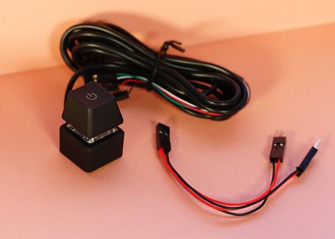 接続はごくごくシンプルにピンヘッダ式。スイッチと電源LEDのピンがあり、電源LEDはスイッチ内蔵のLEDが光る。Y字ケーブルも付属しているのでケース側のスイッチかLEDを生かす事も可能(付属が1本なのでどちらかのみ。基本はスイッチか)。