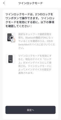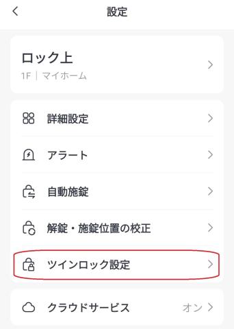 既に設定済みのロックの設定画面で「ツインロック設定」を選択。