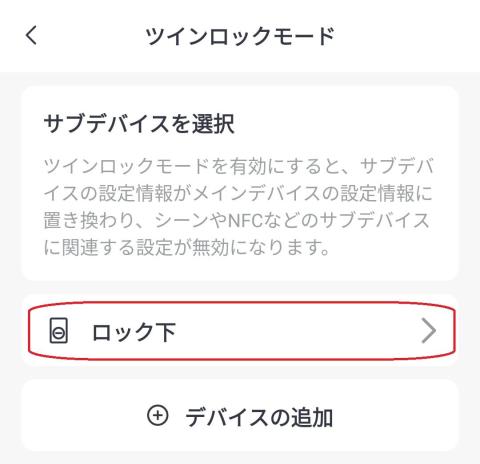 サブデバイスにしたいロックを選択する。この時点で認識していなかったらデバイスの追加で登録する。